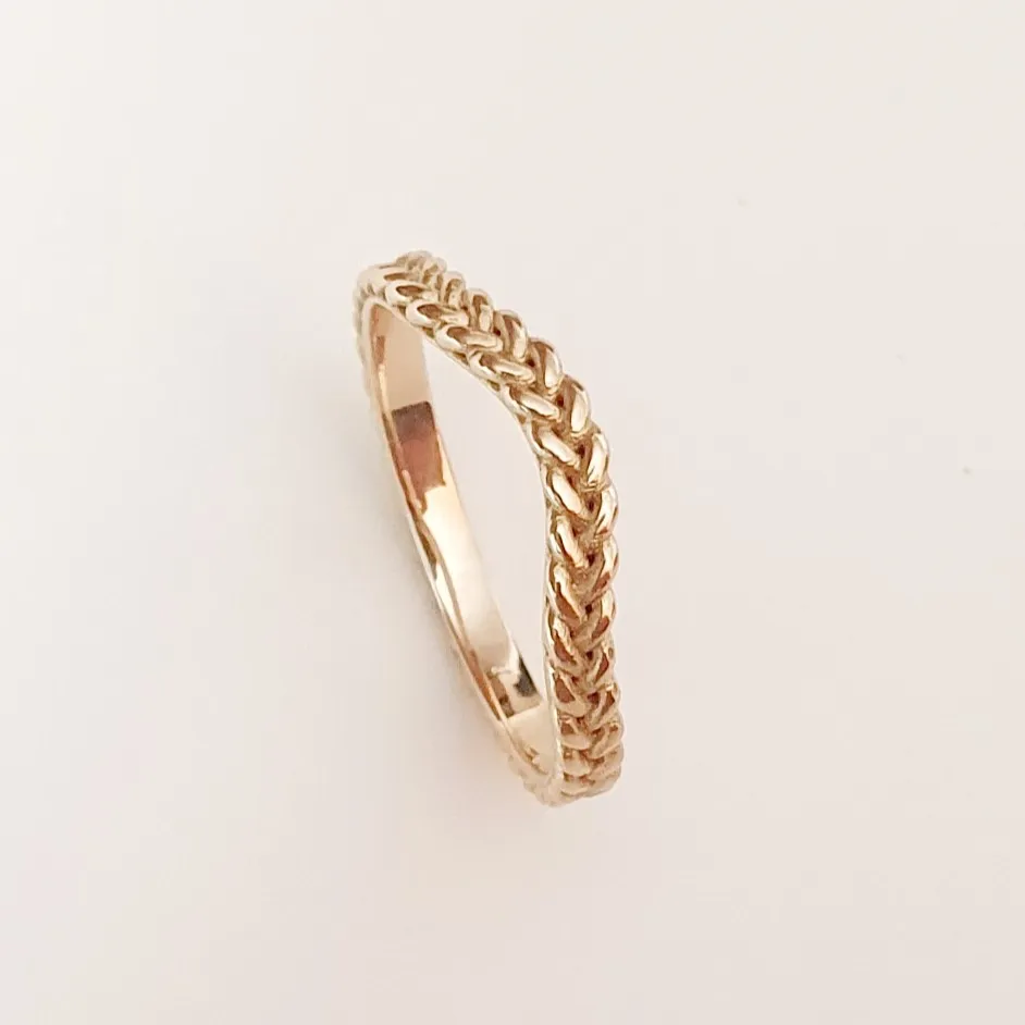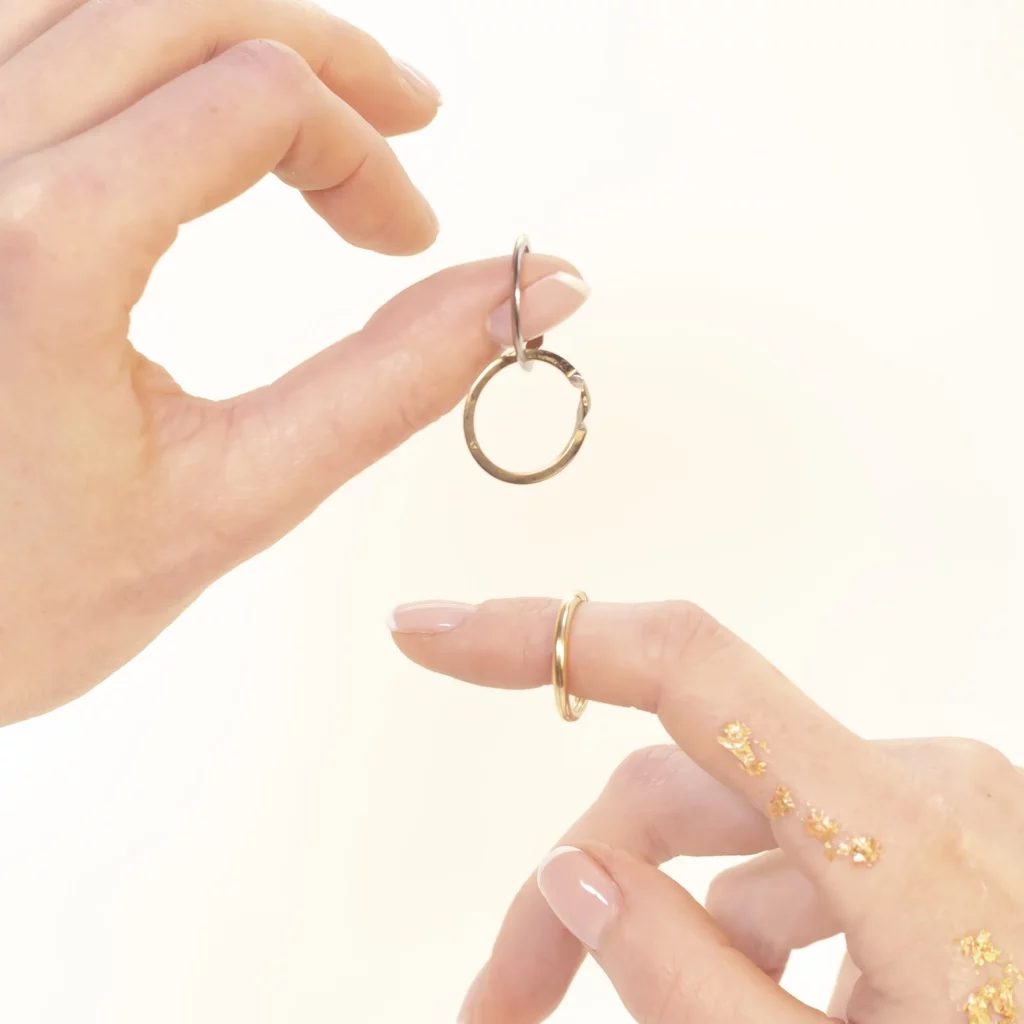 Un anneau vrillé qui crée l’illusion d’un enchevêtrement d’or.