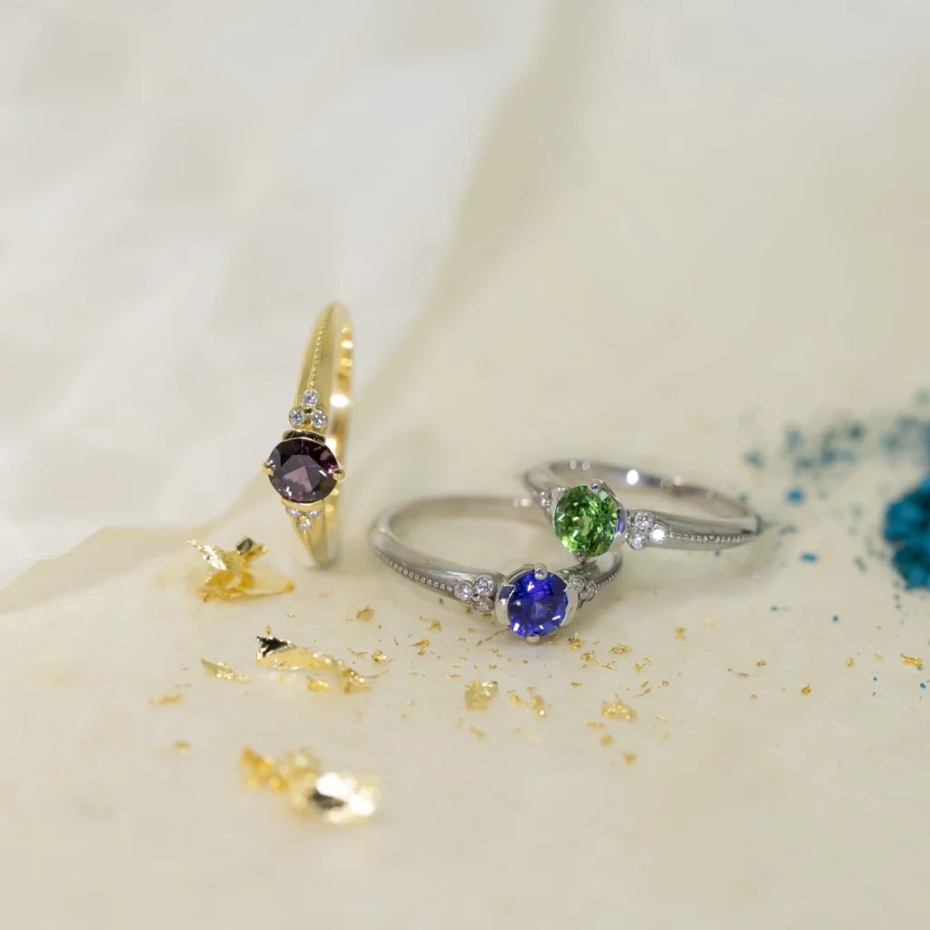 Chaque bague colorée incarne la fraîcheur de la première bague offerte par amour. Lumière, formes et matières sont travaillées pour vous proposer des modèles