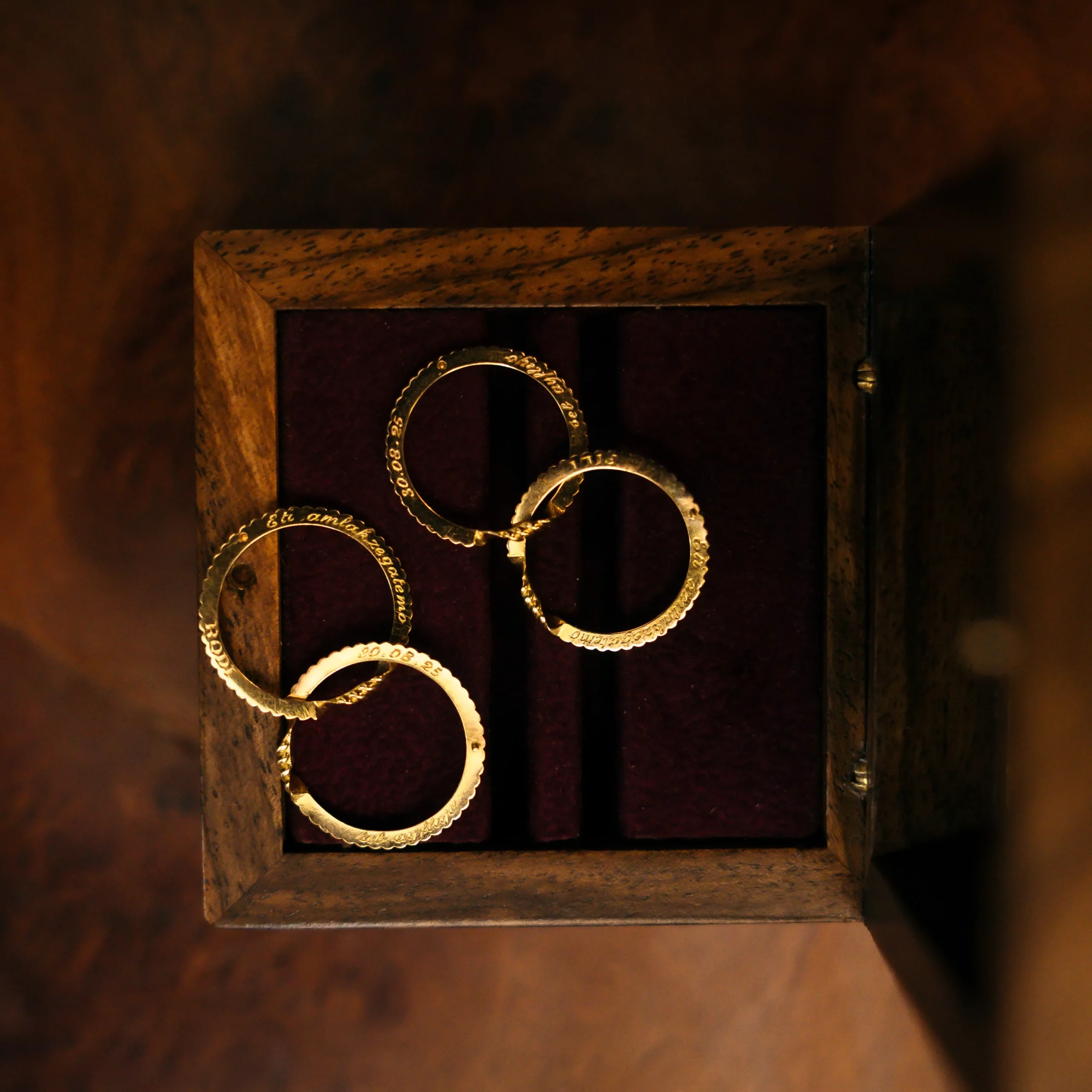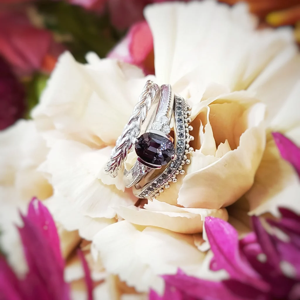 Alliance inspirée du Gimmel de la Renaissance, composée de deux anneaux liés, symboles de deux âmes réunies.