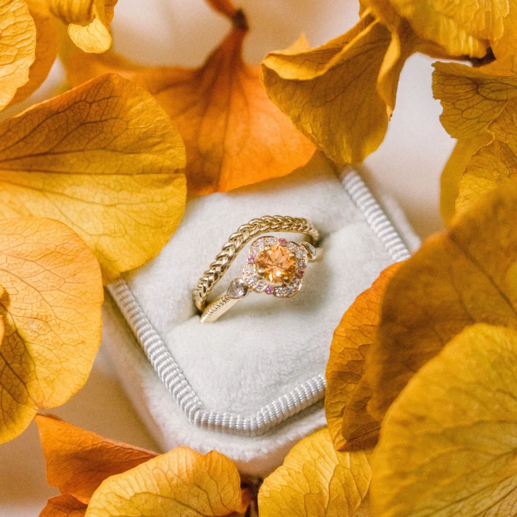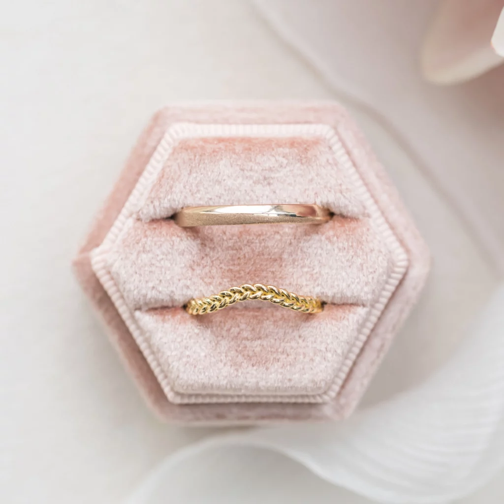 Pensée pour capter la lumière, elle sublime l’éclat des pierres et se love naturellement contre une bague de fiançailles.