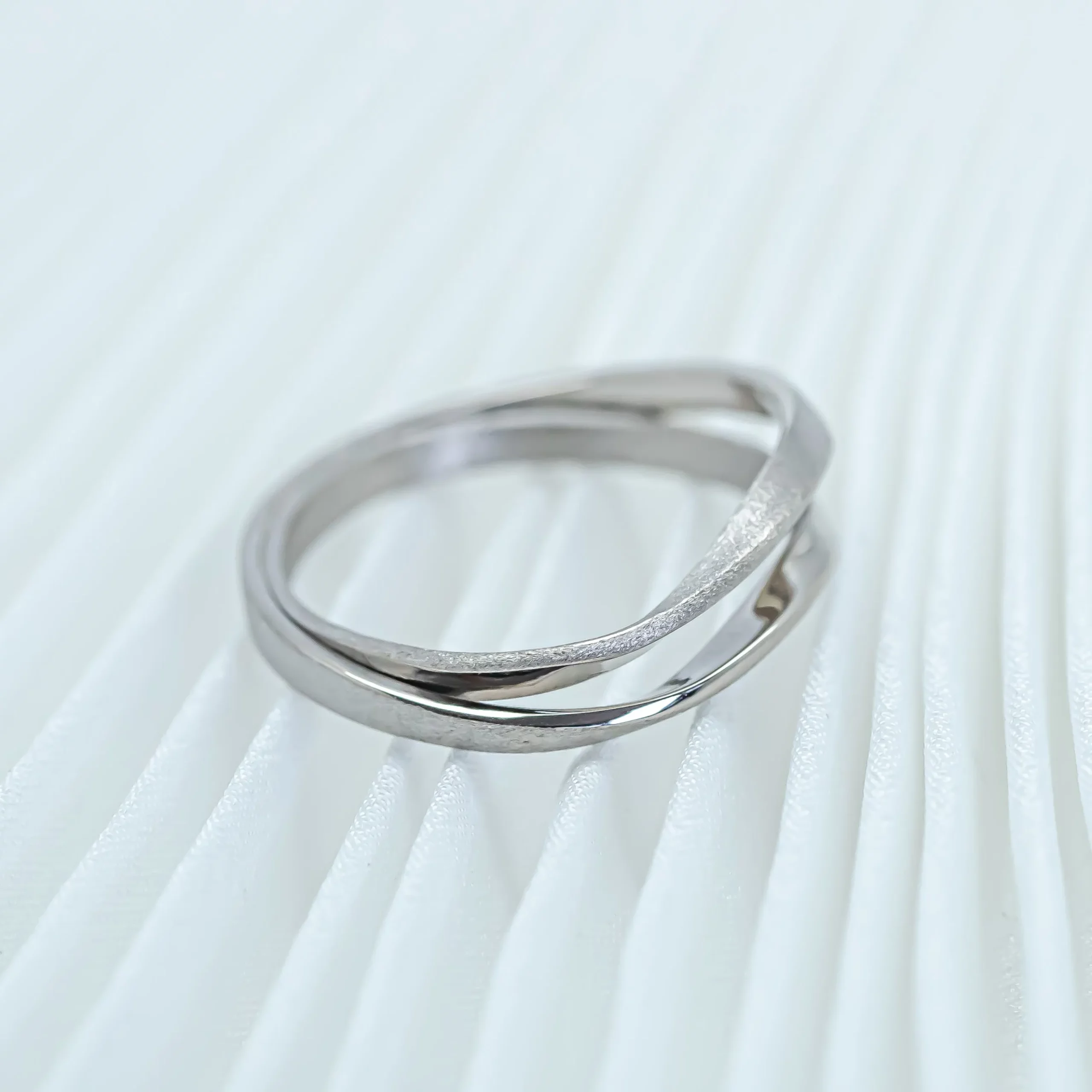 Un double anneau délicatement entrelacé, né de la rencontre des modèles Solange et Béatrice.